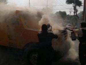 Una camioneta de valores se prendió en llamas por una falla mecánica en el motor, por lo que, se tuvo que pedir auxilio a las autoridades.