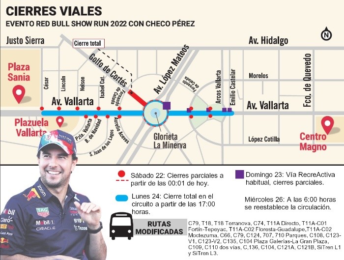 Por el Red Bull Show Run, que tendrá a “Checo” Pérez como figura estelar, hoy inician los cierres viales para el evento que se realizará el martes 25 de octubre.