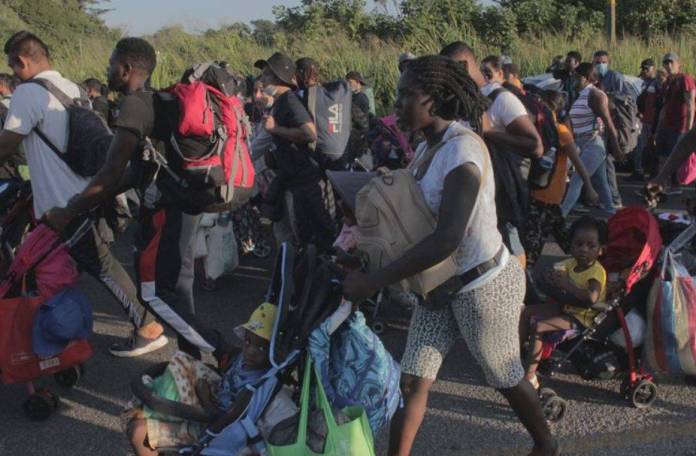 Regeneración, 27 de noviembre de 2021. Tres nuevas caravanas integradas por alrededor de 2,500 personas, principalmente por migrantes haitianos, salieron de la ciudad de Tapachula, Chiapas, con la intención de llegar a Estados Unidos en busca de asilo.