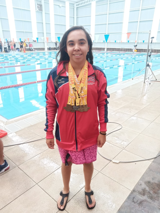Con dos años de vivir en Querétaro y formar parte del equipo representativo de Natación de la Universidad Politécnica de Querétaro (UPQ), Joelle considera que mejoró su nivel deportivo una vez que empezó a entrenar en el estado.
