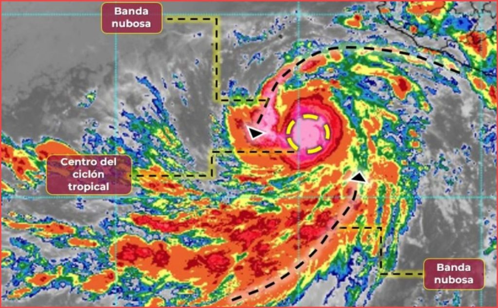(06 DE SEPTIEMBRE, 2023).- La mañana de este martes, “Jova” se intensificó a huracán categoría 2 en escala Saffir-Simpson, localizandose a 835 kilómetos al sureste de Playa Pérula en Jalisco y a 970 kilométros al sur de Cabo San Lucas, Baja California Sur.