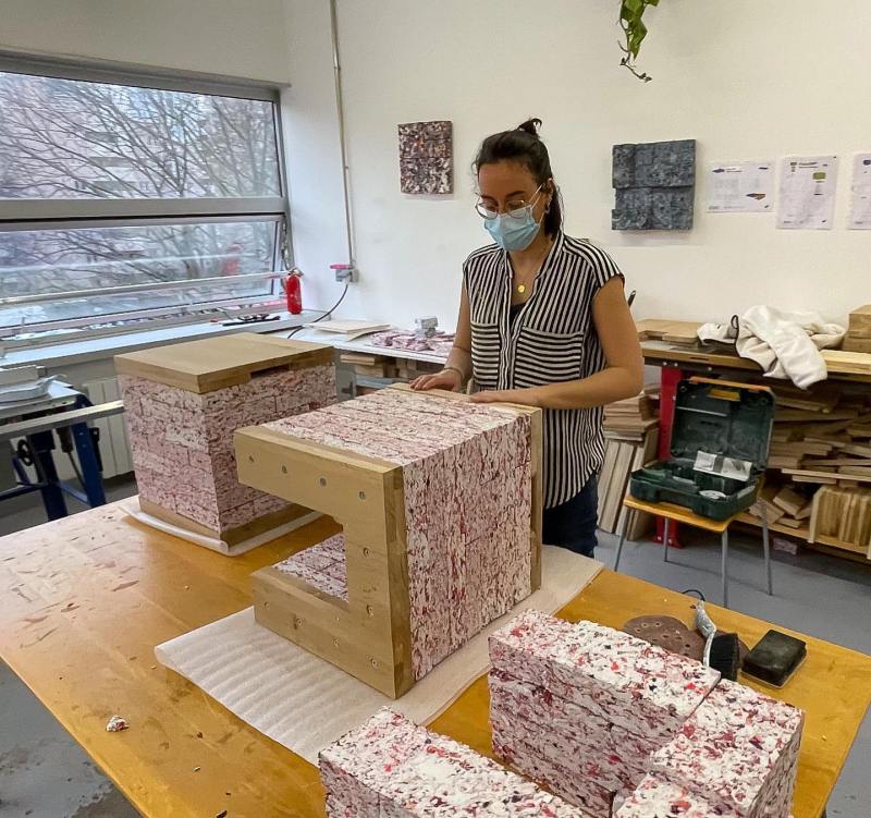 En 2017, la estudiante de arquitectura Clarisse Merlet se sorprendió al descubrir la enorme cantidad de desechos textiles en el mundo, sin mencionar la impactante cantidad de desechos que prevalecen en la industria de la construcción.