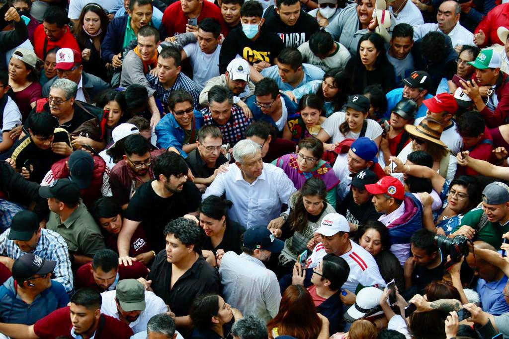 Una muchedumbre se arremolina entorno a Andrés Manuel López Obrador, jefe del Estado mexicano. La multitud se agita en el cruce de la avenida Juárez con el Eje Central Lázaro Cárdenas, en la capital de la República. Una docena de jóvenes lucha por mantenerlo a salvo y evitar que, en las muestras de cariño, solidaridad o apoyo, la población termine por arrastrar al presidente de México. Los jóvenes ponen el cuerpo, lucen rostros y brazos rasguñados, sudan, piden a gritos que se abra paso al titular del Poder Ejecutivo federal.