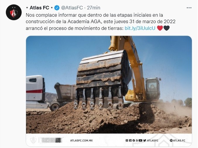 La Academia Aga, futura casa de los rojinegros del Atlas está en marcha. Este jueves, el Club anunció el inicio de las obras en donde estará instalado el centro de alto rendimiento de los Zorros y todo inició con el proceso de movimiento de tierras.