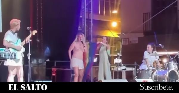 El segundo delito del que se le acusa, el de exhibicionismo, no hay tampoco ajuste legal ni jurisprudencial por el que quepa entender que enseñar unos pechos en un escenario, ya sea como acto reivindicativo, por calor, o por estética, al igual que puede hacerlo un hombre sin que se arme ningún revuelo, fuera, sin embargo, delito en caso de que lo hiciera una mujer. No solo por lo discriminatorio, sino porque tanto la redacción como la interpretación de este delito no admite como comisión el mero hecho de mostrar unos pechos.