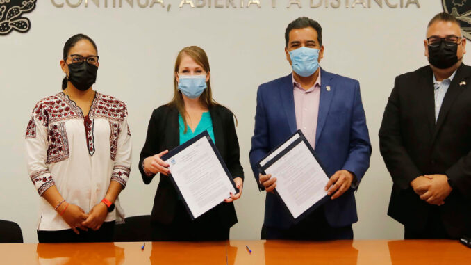 Oaxaca de Juárez, Oax., 02 de diciembre de 2021.- La Universidad Autónoma “Benito Juárez” de Oaxaca (UABJO), representada por el Rector, Eduardo Bautista Martínez, firmó un acuerdo de colaboración con autoridades académicas de la Universidad de Nebraska Kearney (UNK).