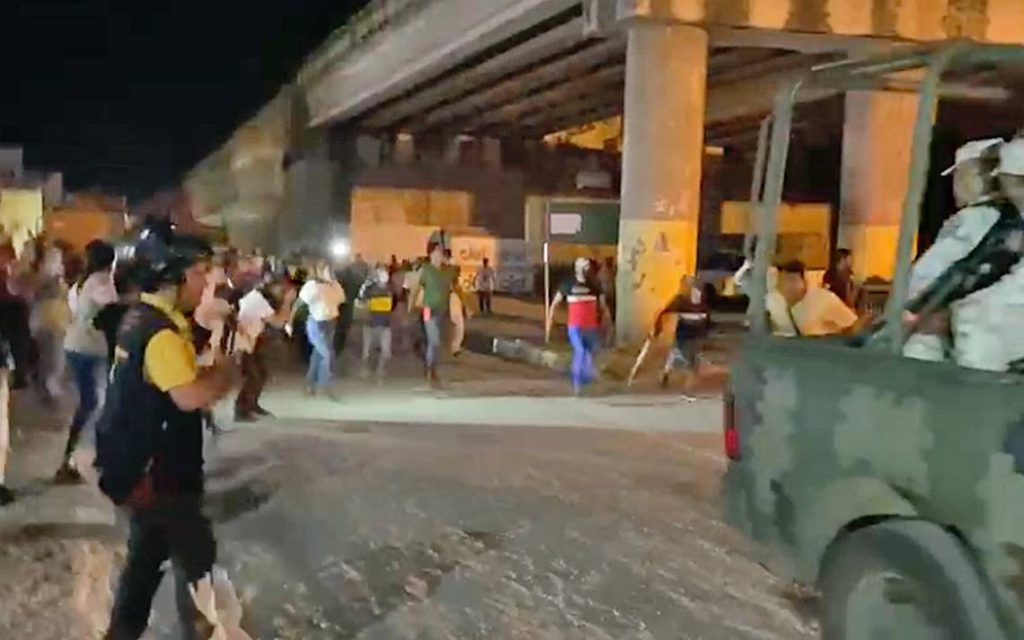Al momento de iniciar el retorno al cuartel, los pobladores lanzaron piedras, palos y diversos objetos en contra de los policías antimotines, militares y efectivos de la Guardia Nacional.
