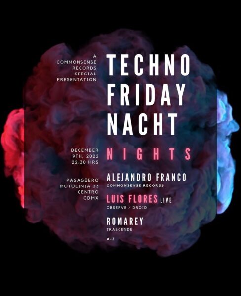 CommonSense Records presenta: Techno Friday Nacht con Luis Flores, Alejandro Franco y Romarey