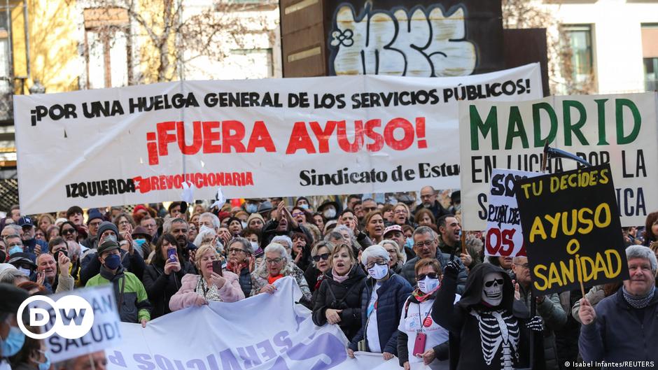 Decenas de miles de personas se manifestaron este domingo (15.01.2023) en el centro de Madrid contra los recortes y las privatizaciones en el sector sanitario, gestionado por el gobierno regional. Unos 30.000 manifestantes, según la Delegación de Gobierno, recorrieron el Paseo del Prado atendiendo al llamado de la Mesa en Defensa de la Sanidad Pública – Marea Blanca.