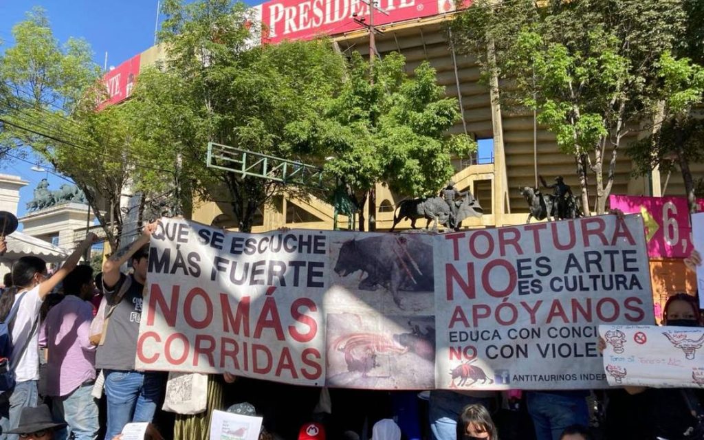 Con peluches, carteles y pegando en cacerolas, los manifestantes hicieron el mayor ruido posible debajo del puente peatonal que cruza el Eje 6 Sur y que conecta con el Embudo de Insurgentes mientras que los amantes de la fiesta brava trataban de concretar su acceso a la Plaza México.