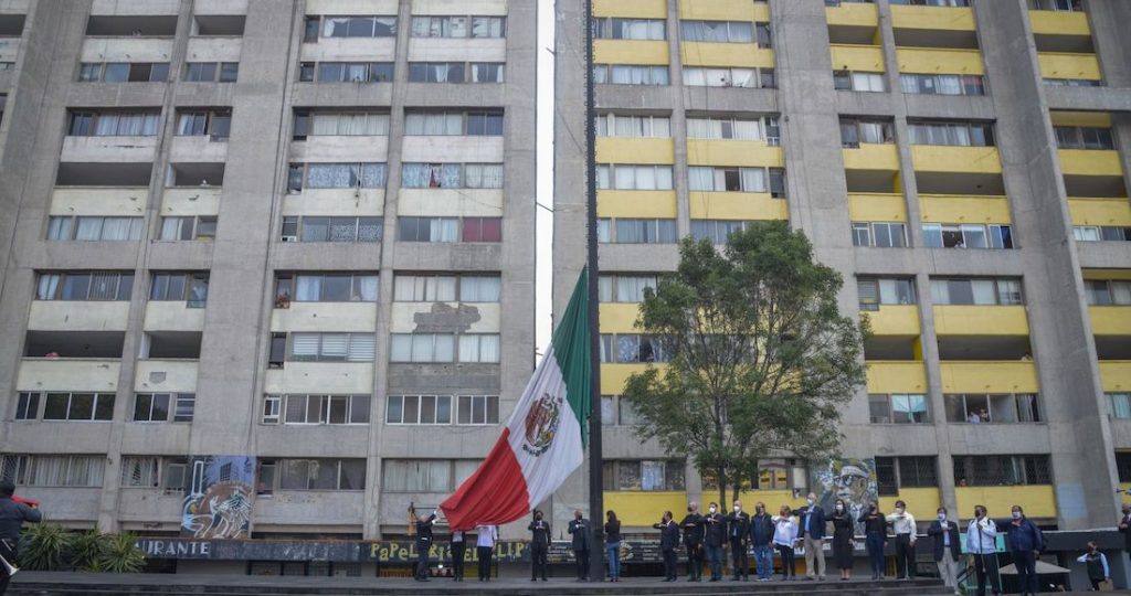 Durante la mañana de este sábado, Claudia Sheinbaum, Jefa de Gobierno de la Ciudad de México, llevó a cabo un izamiento de bandera a media asta en la plaza de las Tres Culturas en Tlatelolco.