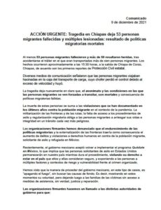 Más de 50 asociaciones exigen que el gobierno investigue accidente de migrantes en Chiapas
