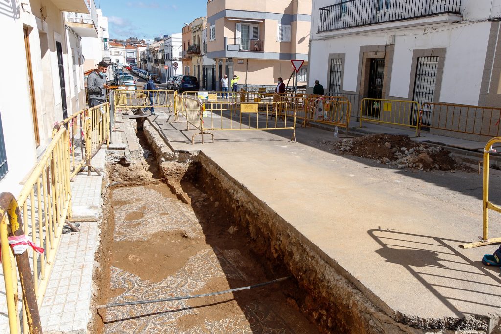 Basta con entrar en la calle donde ha aparecido para encontrarlo debajo de una zanja de grandes dimensiones. Se trata de mosaico geométrico que se observa en todo su esplendor a plena luz del día y que, según los expertos, se encuentra en buen estado de conservación. «Lo descubierto es un pequeño tramo del mosaico, polícromo, con representaciones de motivos geométricos y que formaría parte de una estancia doméstica», ha destacado Félix Palma, director del Consorcio de la Ciudad Monumental de Mérida. Se trata, en concreto, de una pieza decorada con motivos geométricos que en algunos puntos aparece cortado por acometidas antiguas.