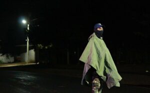 La Guardia Comunal se despliega en la entrada del poblado. La luz de grandes lámparas, instaladas en una techumbre metálica, cae sobre los cuatro integrantes que se han colocado en medio de la carretera. Los automovilistas pueden distinguir, mucho antes de llegar, la presencia de la Ronda Comunitaria, con sus uniformes camuflados, chalecos tácticos y fusiles de asalto R-15. Los vehículos bajan la velocidad al acercarse. Otros seis integrantes de la Guardia, fuera de la vista de los conductores, están colocados en las orillas del asfalto, y dos más en la trinchera de cemento.