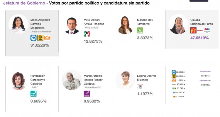 Jefatura de Gobierno. Movimiento Ciudadano aportó 115 mil 292 votos, de acuerdo con el Sistema de Cómputos Distritales y de Demarcación 2018 del Instituto Elector de la Ciudad de México (IECM).
