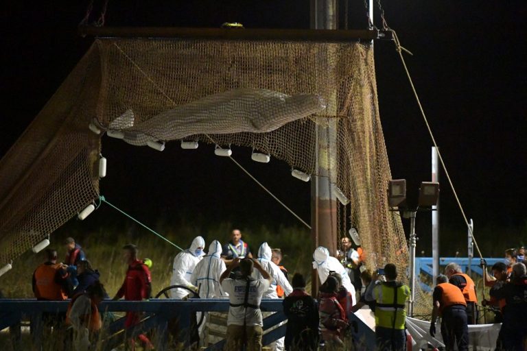 La operación duró al menos 6 horas. Entre 80 especialistas, el ejemplar fue capturado en una red de pesca industrial, para poder llevarla a la costa francesa. Sólo así, pensaron las autoridades, podría recuperar el rumbo. La organización Sea Shepherd participó en los esfuerzos de rescate, con la intención de llevarla a un estanque de agua salada para que recuperase fuerza.