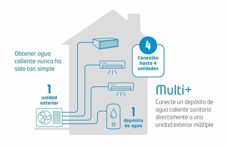 Multi+, el innovador sistema de aire acondicionado que también produce agua caliente.