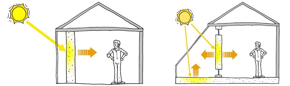 Solo como ejemplo, se estima que un muro de unos 40 cm retendría el calor al menos durante ocho horas antes de que este alcanzara el interior de la vivienda, lo que daría un respiro durante las horas centrales de un día de verano, y aclimataría el hogar al caer la noche.
