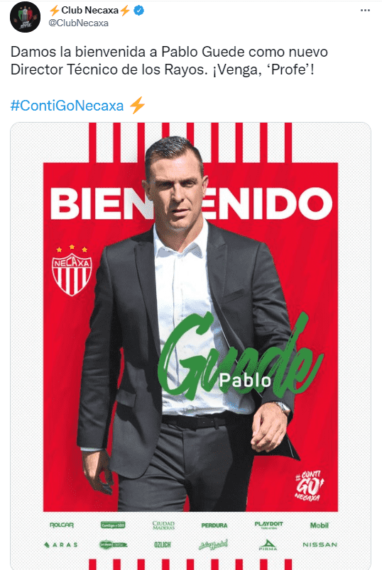 Guede llega al conjunto de Aguascalientes ya con experiencia en la Liga MX, luego de haber dirigido primero al extinto Monarcas Morelia y posteriormente a los Xolos de Tijuana.