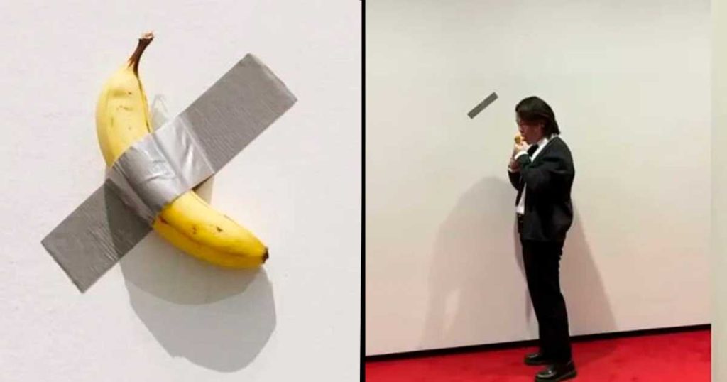 La “obra” nombrada como “El Comediante” estaba siendo mostrada en el Museo de Arte Leeum en Seúl (Corea del Sur) cuando en eso un estudiante de artes andaba por ahí visitando el lugar, y se le hizo fácil agarrar la fruta que estaba pegada en la pared para comérsela.