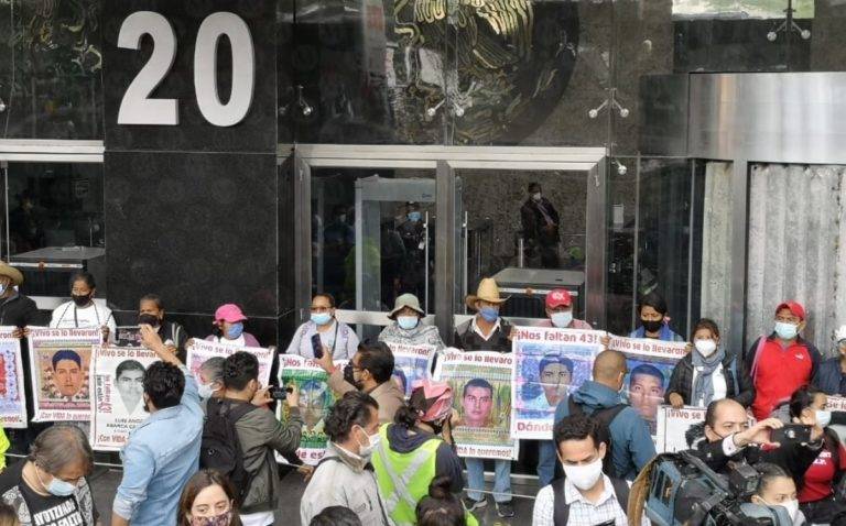 Regeneración, 22 de septiembre del 2022. La tarde de este jueves estudiantes provenientes de Guerrero, realizaron una manifestación frente a las instalaciones de la Fiscalía General de la República (FGR) en la Ciudad de México.