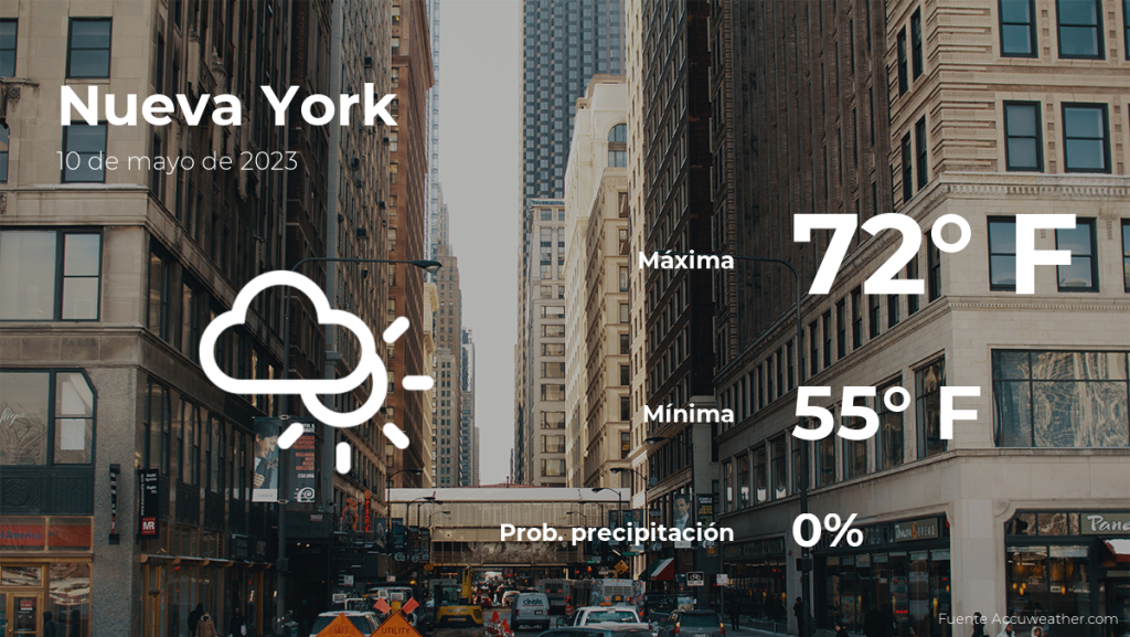 En cuanto al clima de mañana en la ciudad de Nueva York se prevé escasa nubosidad. Las temperaturas se moverán entre los 63 y los 79 grados Fahrenheit (17 y 26ºC).