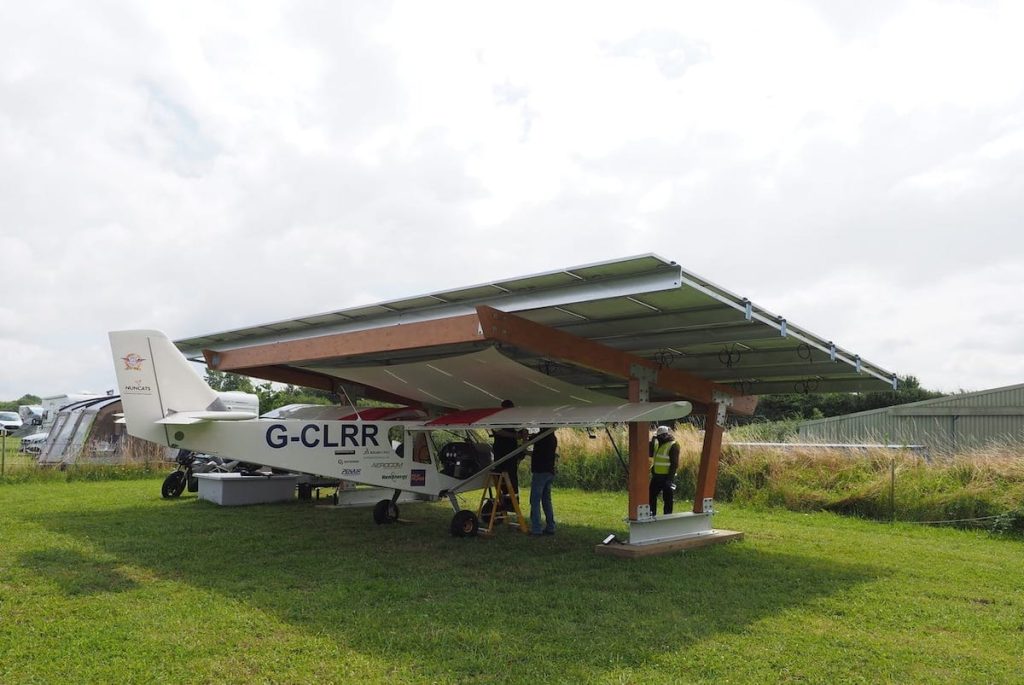 En el aeródromo británico de Old Buckenham, una avioneta eléctrica se carga ahora con energía solar.