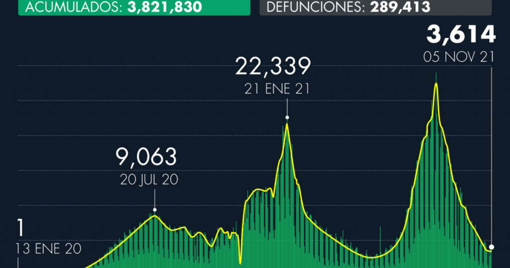 Número de casos de Covid-19 en México al 05 de noviembre de 2021