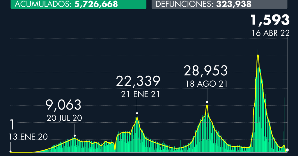 Total de defunciones confirmadas en México por Covid: 323,938