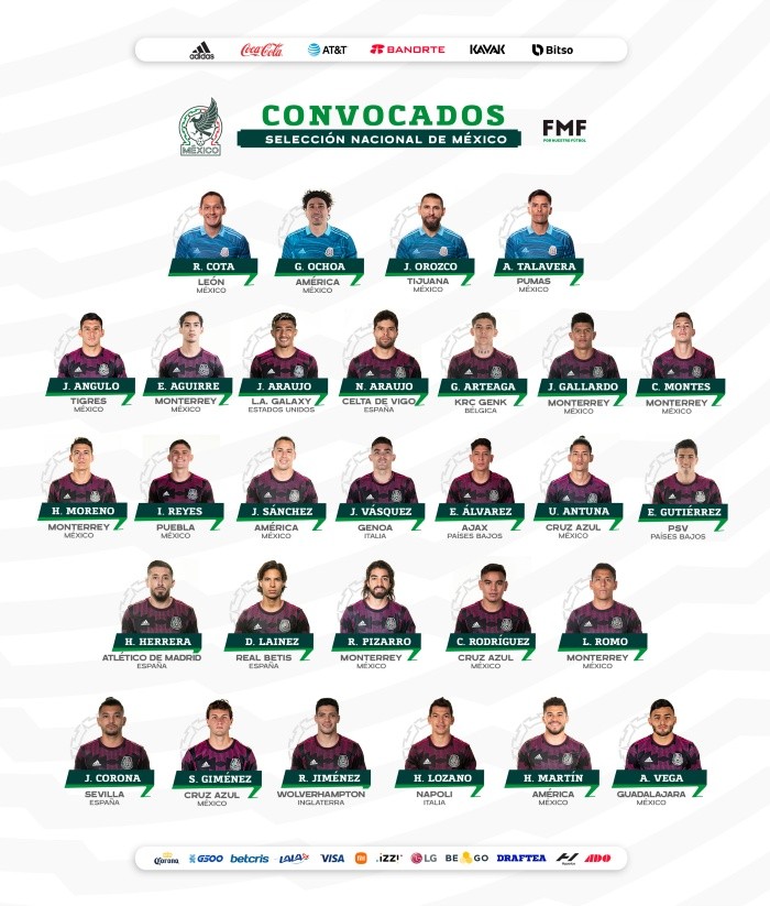 La Selección Mexicana ha compartido a través de sus redes sociales, la convocatoria para encarar los próximos duelos de la eliminatoria mundialista rumbo a Qatar 2022. En la lista destaca la presencia de jugadores como Rodolfo Pizarro que ha mostrado un nivel muy bajo y la ausencia una vez más del delantero azteca en mejor momento, Javier «Chicharito Hernandez