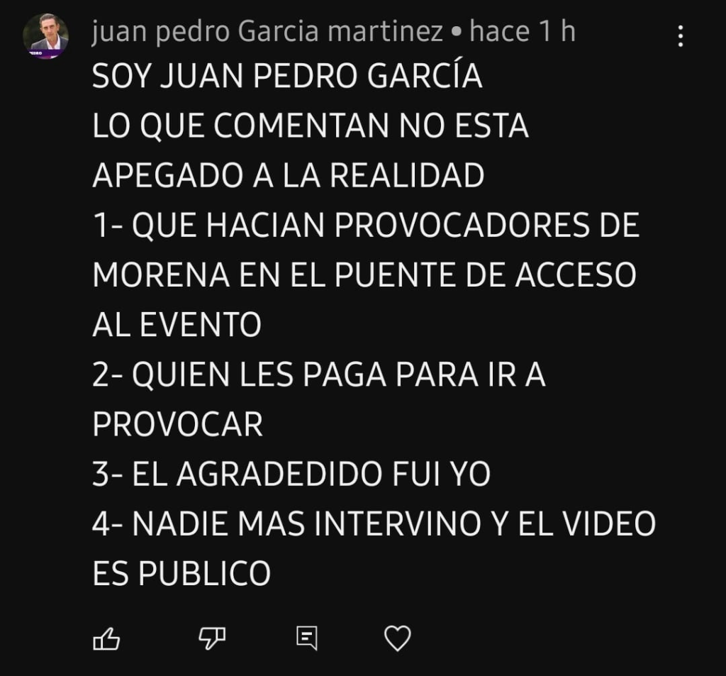 García Martínez además tuvo el descaro de acusar que el agredido fue él, aún cuando en el vídeo se ve como arremete en contra de los morenistas que estaban realizando actos de campaña en el lugar.