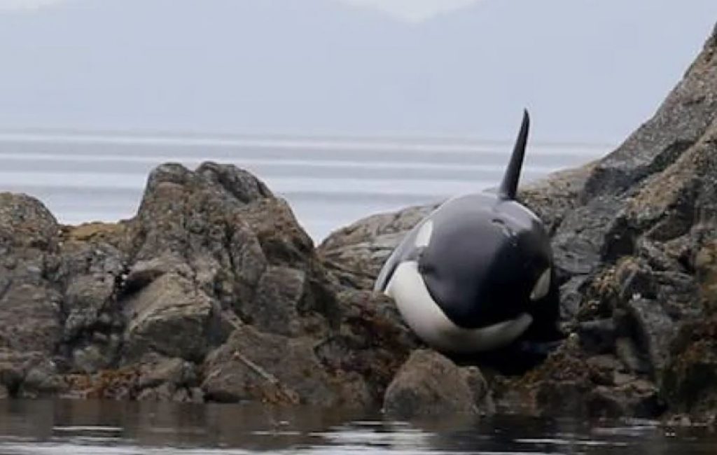 Una orca fue rescatada por la gente de la comunidad en Canadá mientras se encontraba varada
