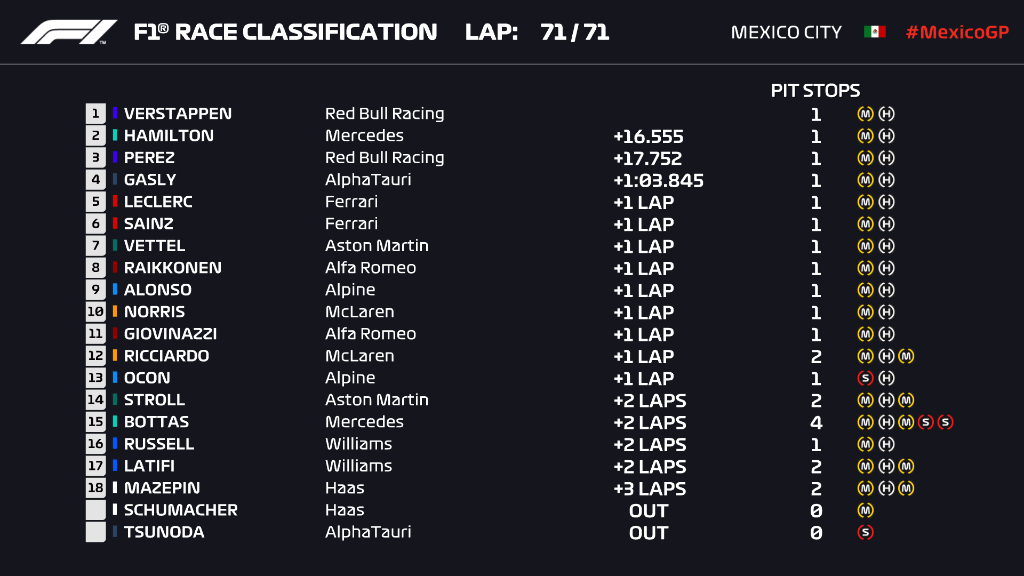 Sergio «Checo» Pérez además, con el tercer lugar obtenido, se convierte en el primer piloto mexicano que sube al podio en el Gran Premio de México.