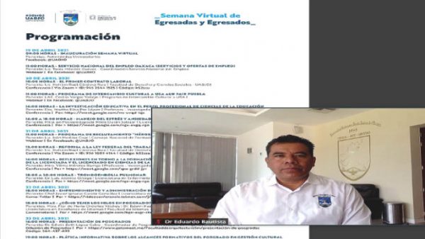 La comunidad de profesionistas participó en videoconferencias, webinars, cursos y talleres. Oaxaca de Juárez, Oax., 07 de mayo de 2021.-...