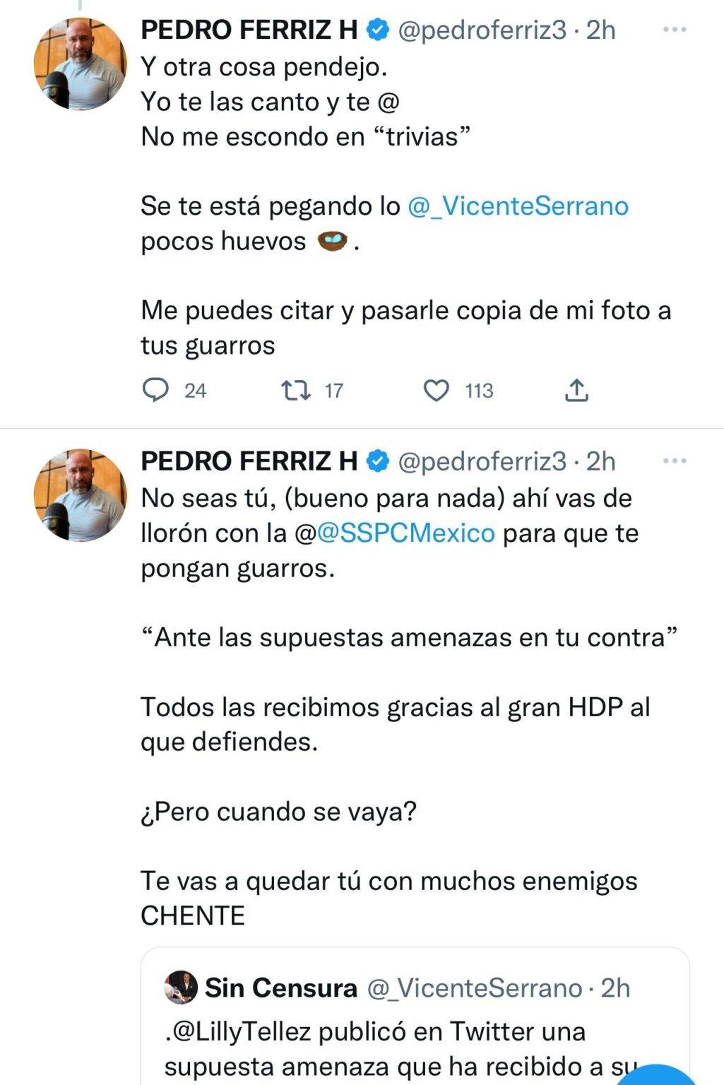 Regeneración, 5 de diciembre del 2022. Usuarios de redes sociales se lanzaron contra Pedro Ferriz Hijar, luego de sus ofensas contra Edy Smol.