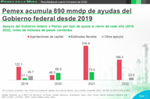 En el contexto de estos cuantiosos apoyos, tenemos a una empresa petrolera que presenta prácticamente el mismo nivel de deuda que en 2018, pues en diciembre de 2022 se hallaba ligeramente por encima de los dos billones de pesos. Del total, Pemex tiene la obligación de pagar alrededor de la cuarta parte en menos de un año y cerca de la mitad en un plazo de cuatro años. En una época con altas tasas de interés, refinanciar esa deuda será más costoso, como quedó claro al cierre de enero pasado, cuando la empresa colocó 2 mil millones de dólares de deuda a una tasa superior al 10% anual.