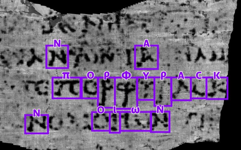 La palabra revelada fue πορφύρας, que hace referencia al tinte púrpura, un color estrechamente vinculado con la nobleza y el poder. El rollo de papiro observado fue hallado por trabajadores en 1752, quienes desenterraron 1.800 pergaminos en total, y que se presume albergan obras literarias y filosóficas de los siglos I y II a.C.