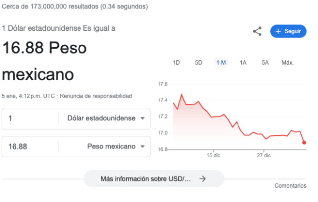 (05 DE ENERO, 2024).- Este viernes, el peso mexicano reportó una nueva buena racha, colocándose por debajo de las 17 unidades, mostrando una ganancia frente al billete verde.
