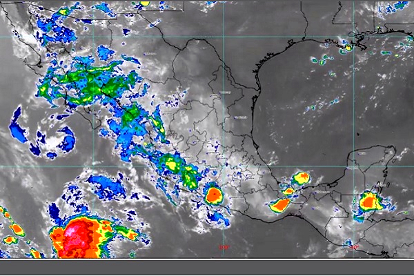Se espera viento de dirección variable de 15 a 30 km/h en la región, con rachas de 50 a 60 km/h en el Istmo y Golfo de Tehuantepec, así como descargas eléctricas en zonas con lluvia.