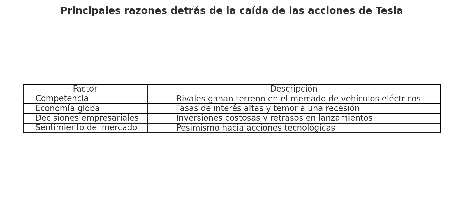 - Presión económica global: Las tasas de interés elevadas y el temor a una recesión han afectado las expectativas de crecimiento de empresas como Tesla [[3]].