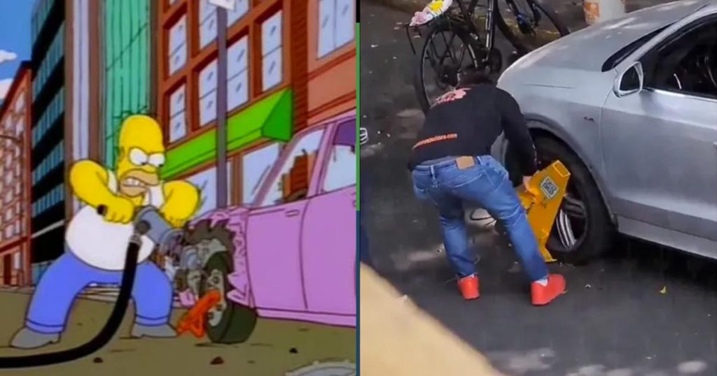 Pero eso no detuvo a un hombre que al ver que a su coche le habían puesto uno de estos odiosos objetos, se bajó de su vehículo para quitar la “araña”, sin que hasta el momento alguien sepa cómo le hizo.