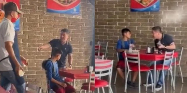 Esto sucedió en Hermosillo y fue captado por una mujer que se encontraba al interior del restaurante. Un niño se acercó a Jorge Arce para pedirle una moneda para poder comer y el «Travieso» prefirió sentarlo a la mesa con él para que pudiera comerse unos tacos de camarón.