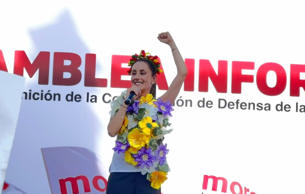 “Soy la única mujer de los seis que está participando y yo creo que las mujeres no nos merecemos más, pero tampoco nos merecemos menos. Ya es tiempo de las mujeres y una mujer puede definir el destino de la nación”, subrayó Sheimbaum ataviada con un arreglo floral y una diadema de Amealco, como la de Lelé.