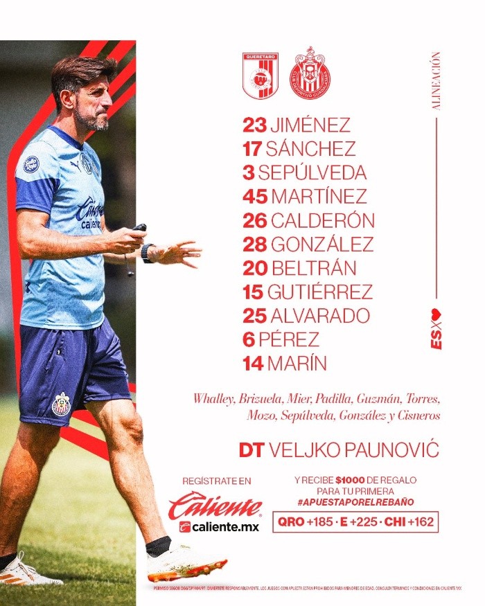 55′ Chivas tiene su primer cambio tras penal de Gallos