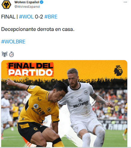 No levanta cabeza el Wolverhampton Wanderers del mexicano, Raúl Jiménez que cayó este sábado por 0-2 contra el Brentford y supone el quinto partido sin marcar del delantero.