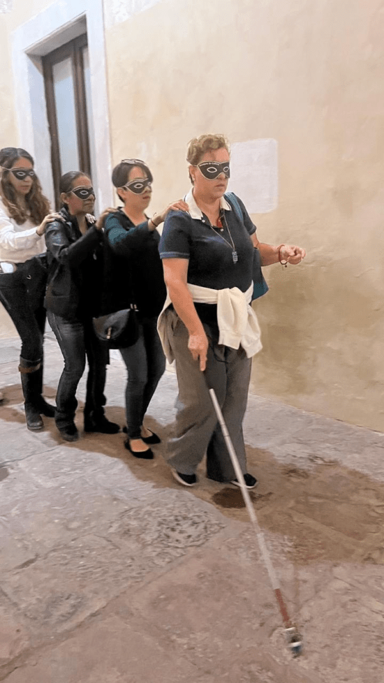 “En Querétaro habemos más de 100 mil personas con discapacidad visual. Por eso es importante que quienes son normovidentes vivan la experiencia para que de esa manera se sensibilicen y asuman una actitud de empatía y de apoyo hacia este sector de la población”, comentó Lugo Escobar, quien adquirió la ceguera a los 10 años.