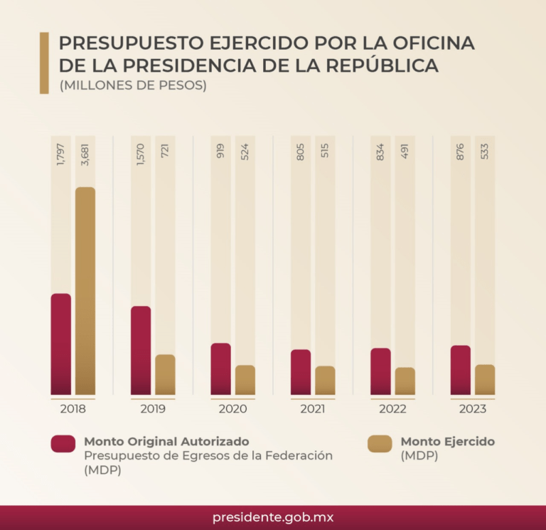 Y es que cabe destacar que el presidente mostró un comparativo del presupuesto ejercido por la Oficina de la Presidencia de la República de 2018 a 2023.