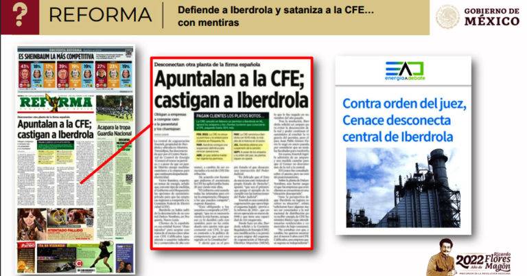 El Gobierno de Andrés Manuel López Obrador exhibió una vez más al diario Reforma por defender con mentiras a la empresa española Iberdrola y atacar a la CFE.