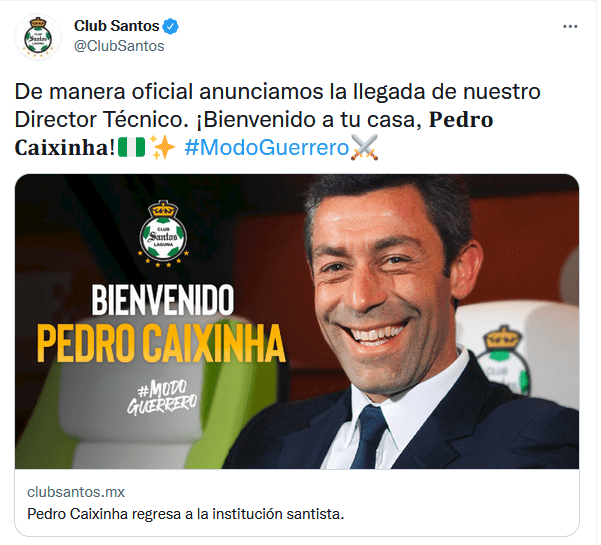 Santos anunció este miércoles el regreso a casa de Pedro Caixinha, quien estará con el equipo en el inicio de una nueva etapa en la Liga MX, en el Torneo Clausura 2022.
