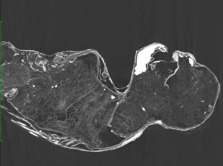 Escaneo del artefacto que no revela ningún esqueleto excepto la mandíbula. / Universidad de las Ciencias y las Artes en Kurashiki
